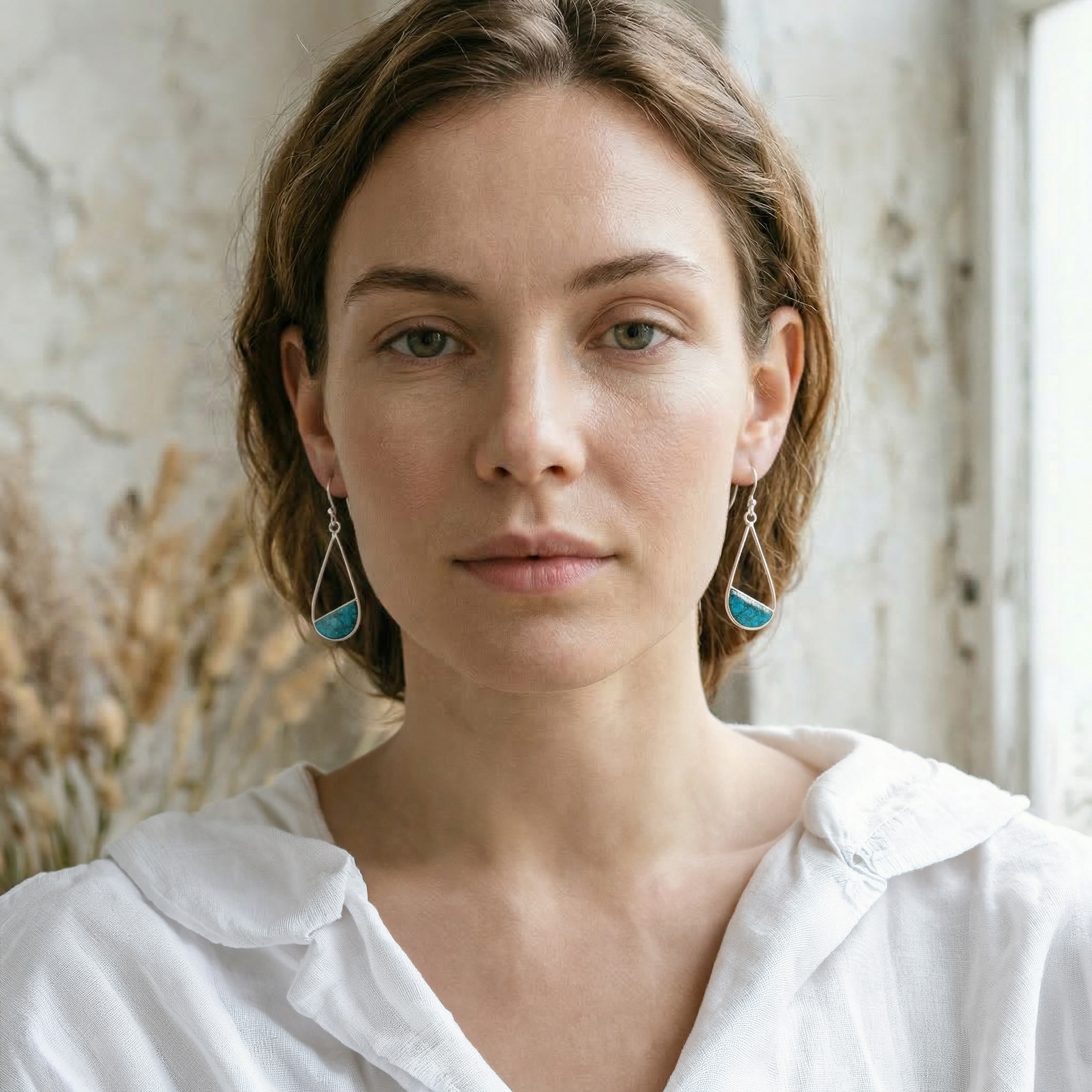 Each pair is individually handcrafted by our master jewelers. The precision in the angles of the square wire and the exact fit of the crescent stone are markers of its exceptional quality and artisanal origin.