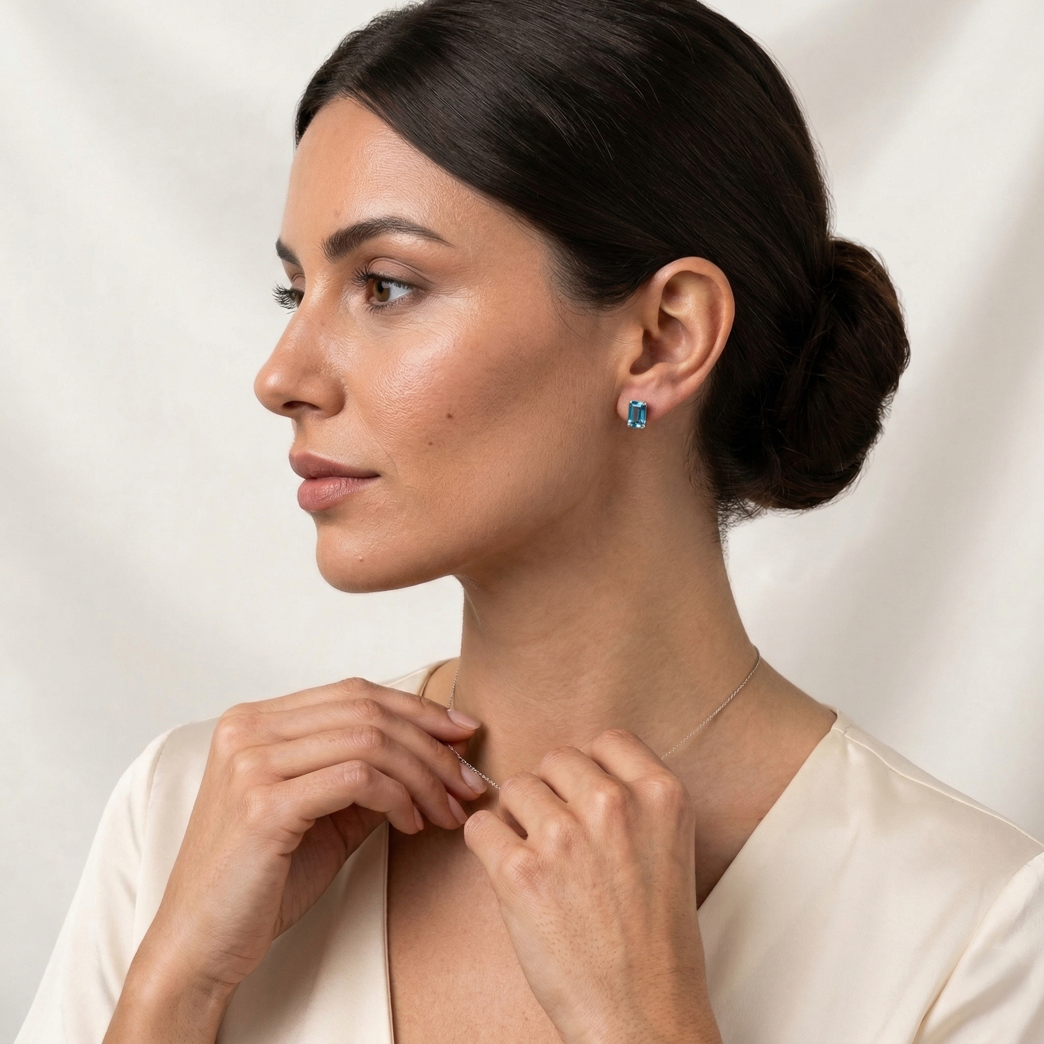 Avoid contact with abrasive chemicals and perfumes. Topaz can be sensitive to prolonged exposure to intense heat. Clean gently with a soft cloth and warm soapy water. Store in its original luxury case to prevent scratches and maintain the white gold’s brilliance.