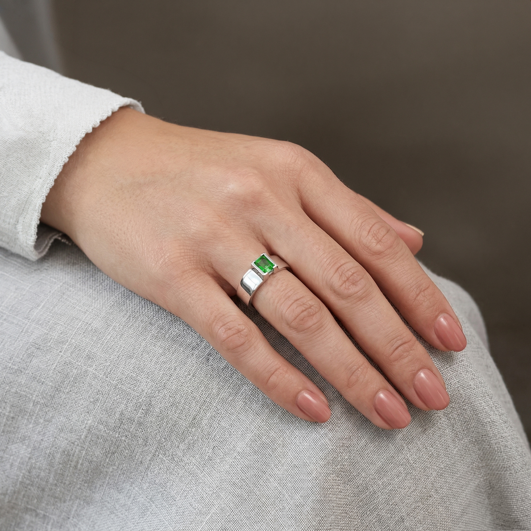 Main Stone: Natural Green Obsidian (Rectangular cut, 0.87 CT)