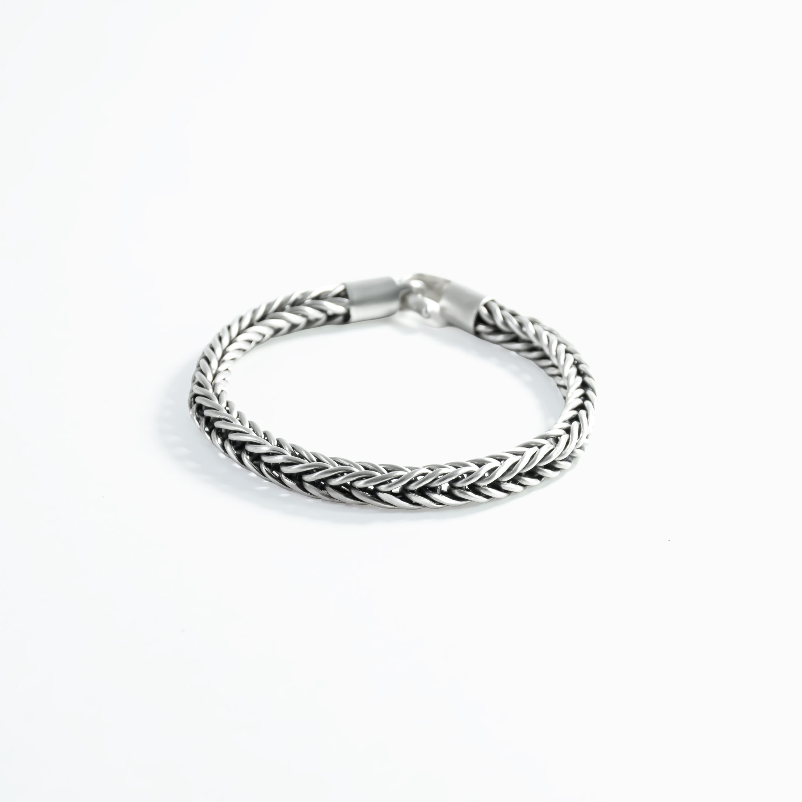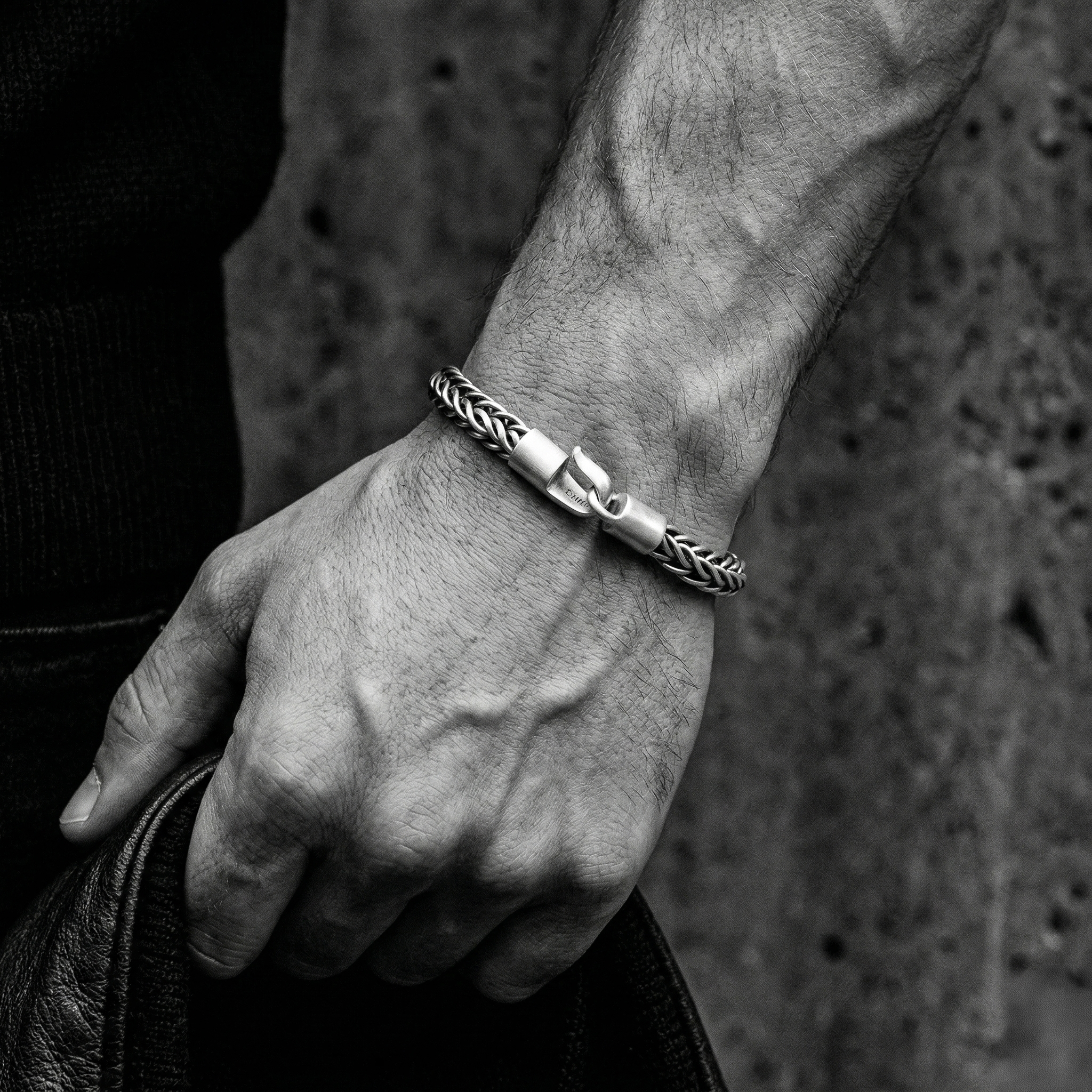 Thick 950 Sterling Silver 16 cm hand-woven bracelet with a professional matte finish. A technical masterpiece that honors manual weaving, textural engineering, and professional jewelry excellence.